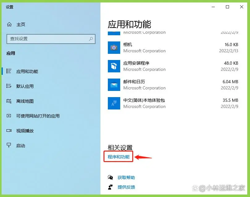 2.6 下拉右边滚动条到最底部,在相关的设置中找到“程序和功能”,点击进入。
