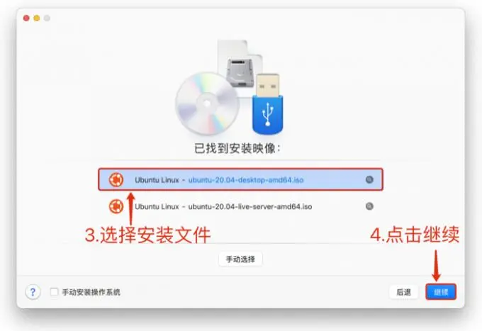 如果没有识别,点击“手动选择” → 选择本地已下载的 .iso 文件;