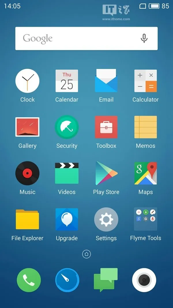 刷机完成后,国际版Flyme的桌面如下: