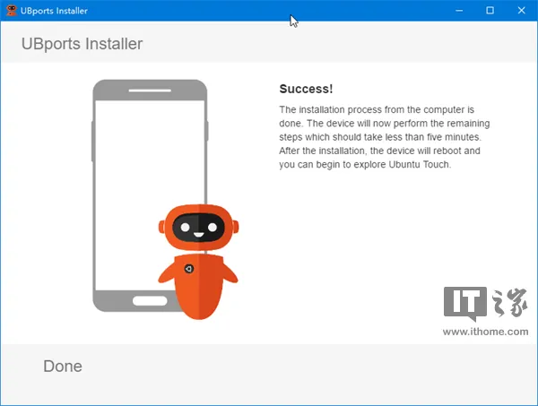 手机刷入Ubuntu Touch完成后,刷机工具将提示如下: