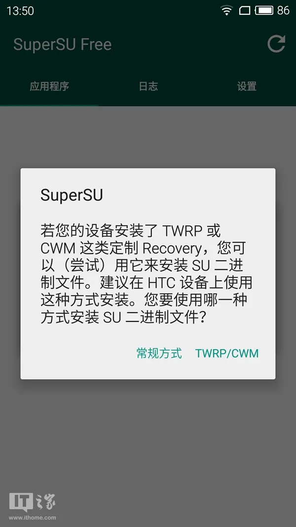 安装SuperSU并打开,选择“极客”模式并进入,SuperSU将提示你更新二进制文件,以“常规方式”安装即可。