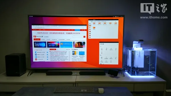 ▲刷了Ubuntu Touch的魅族PRO 5连接到大屏幕(电视)变身PC模式。
