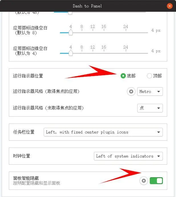 点击设置dash-to-panel改变桌面状态栏风格。