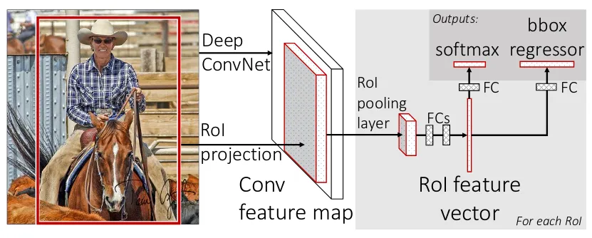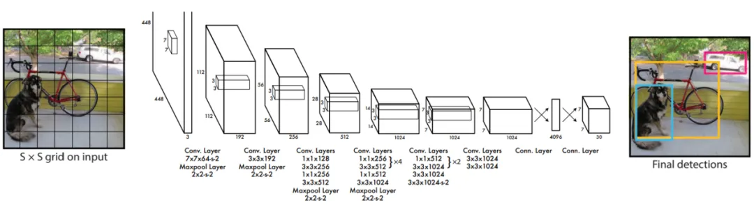 2D目标检测是从图像中预测目标位置及类别的任务。2D目标检测网络可分为两个流派,即一阶段和二阶段网络。所谓一阶段网络是直接在特征层预测目标的分类与位置,以YOLO系列为代表,其中YOLOV7网络取得了速度和精度的平衡,图2为YOLOV1的网络架构。二阶段网络以RCNN系列为代表,其思想是通过RPN网络生成候选区,再在候选区上进一步预测目标的分类和位置,图3展示了Fast-RCNN网络架构。二阶段网络由于需要首先生成候选区,其计算量往往较大,速度较慢,但能获得更高的精度。在自动驾驶领域,2D检测广泛应用于红绿灯检测、车道线检测等任务中。