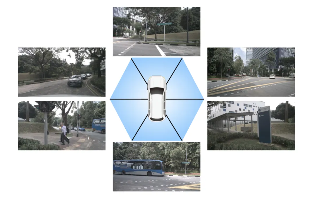 焦距适中的相机,FOV是有限的,想要检测车身一周目标,就要部署多个相机,每个相机负责一定FOV范围内的感知。最终将各相机的检测结果通过相机到车身的外参,转换到统一的车辆坐标系下。