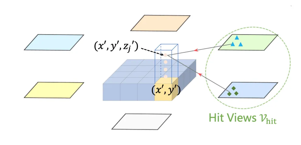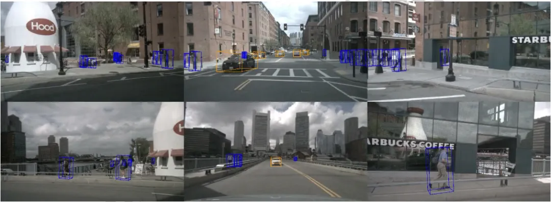 但在有共视时,会产生冗余检测,即有多个摄像头对同一目标做了预测(图4展示了多相机俯视图),现有方法如FCOS3D[3],会在统一的坐标系下对所有检测结果做一遍NMS,有重合的目标框仅留下一个分类指标得分最高。