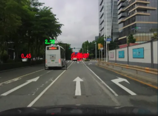 在开放道路中不可避免地遇到各种各样的corner case,洒水车便是其中之一。洒水车产生的大量水雾在激光雷达点云上会产生大量的噪点,同时也会对摄像头成像产生巨大干扰。我们通过数据闭环积累了大量数据,通过多传感器融合、以及数据增强手段有效解决了此类问题。图31展示了当无人车穿越洒水车的场景,感知系统稳定感知到了左前方的洒水车,并成功穿越了水雾。