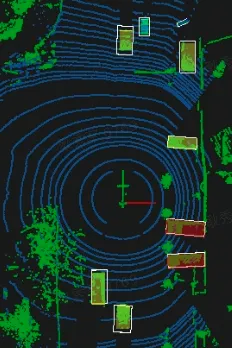自动驾驶感知遇到的另一大挑战是极端天气。无人车要想不间断运营,不可避免会遇到雨、雪、雾等极端天气,而极端天气会对传感器数据造成极大影响,从而影响感知的准确性,甚至造成自动驾驶不可用。感知必须解决极端天气带来的挑战,从而实现全天候运行能力。夜间大雨天可能会造成摄像头成像模糊,如图15所示,此时从图像获得稳定感知结果异常困难。而激光雷达在极端天气下容易产生大量噪声,如图16所示,此时如何避免漏检和误检变得异常棘手。