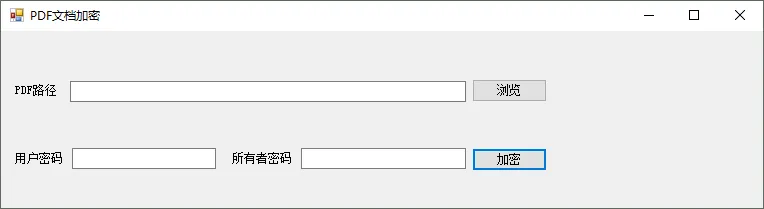 界面主要有选择pdf文档按钮、pdf文档路径和pdf密码输入框以及PDF加密按钮。界面效果如下: