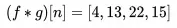 import numpy as np f = np.array([1,2,3]) g = np.array([4,5]) print(np.convolve(f,g))