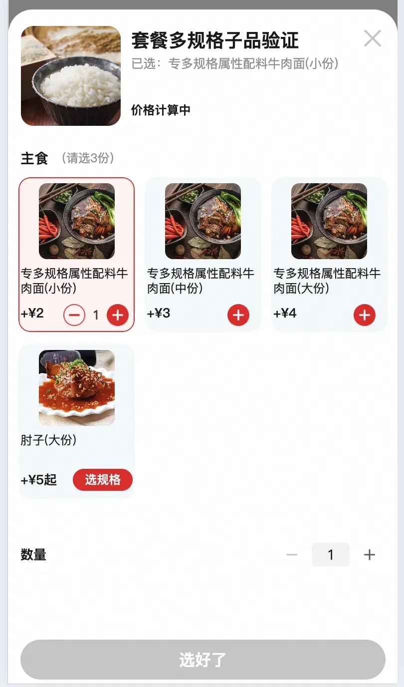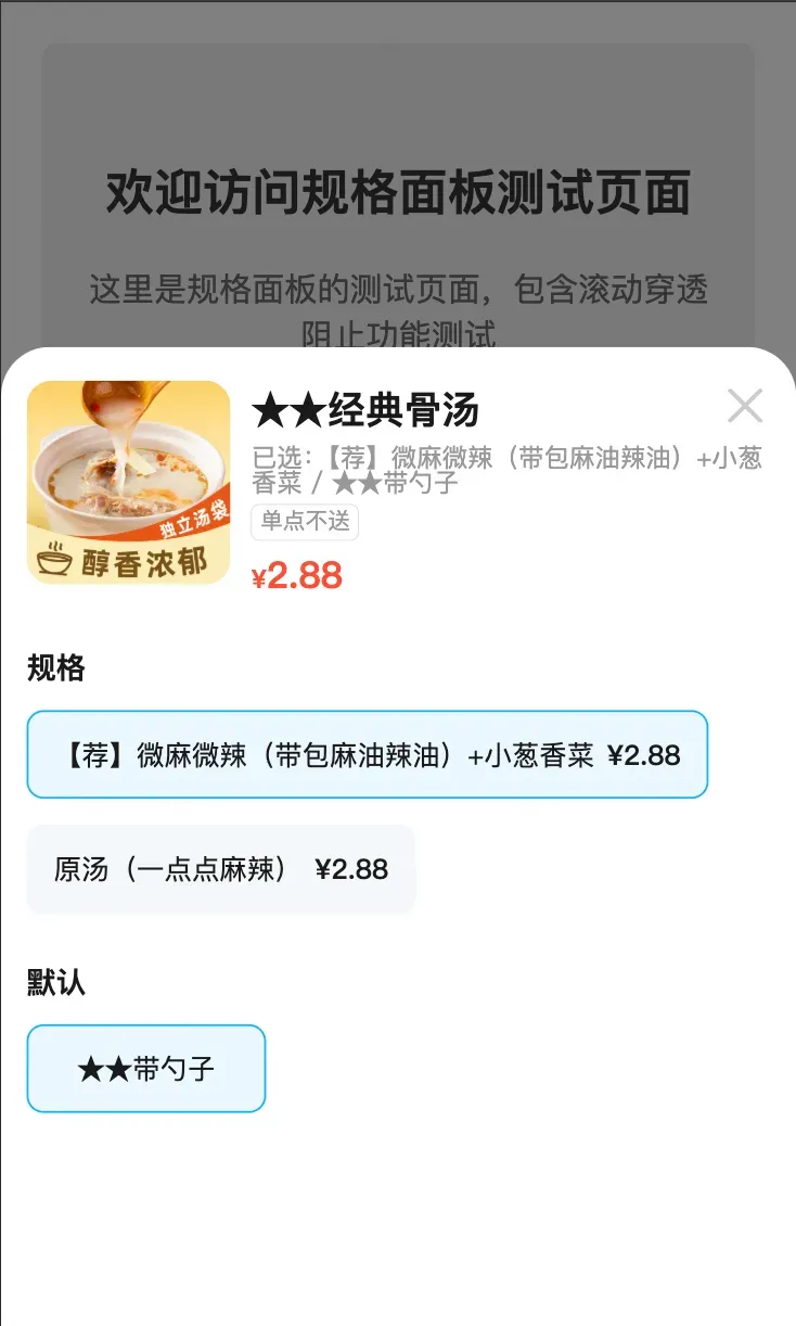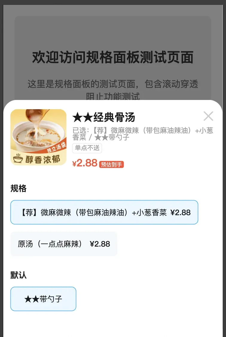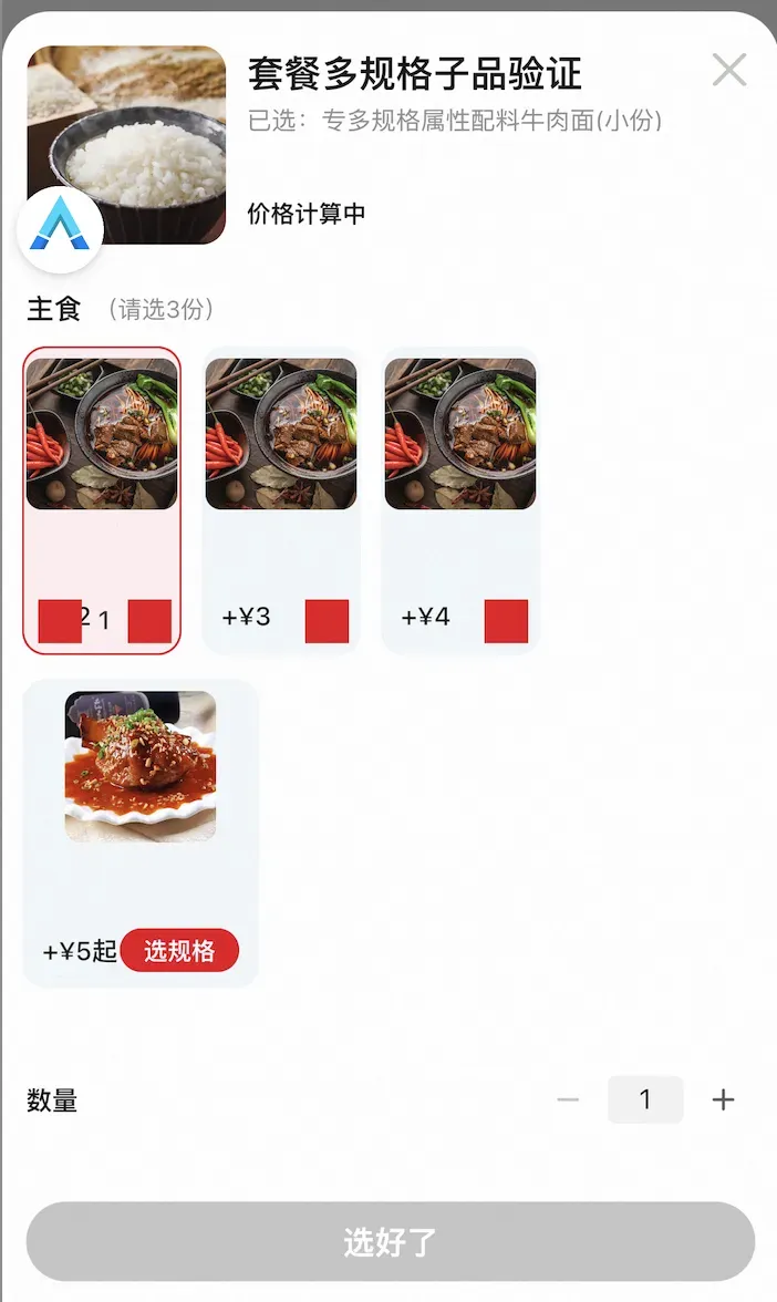 线上规格面板渲染浮层举例,左图为单品客制化面板,右图为结构化套餐面板,业务特性下相差很大。