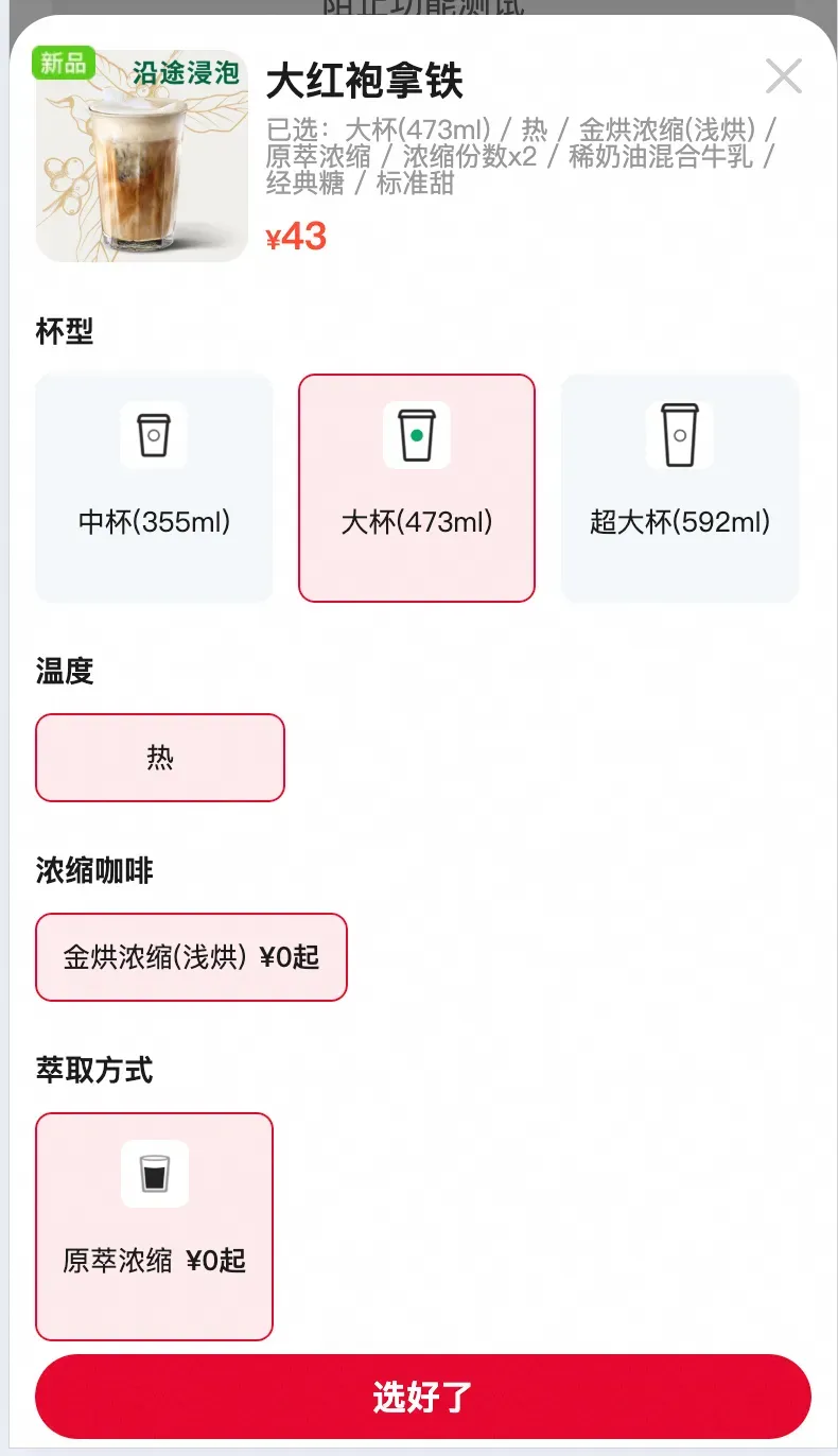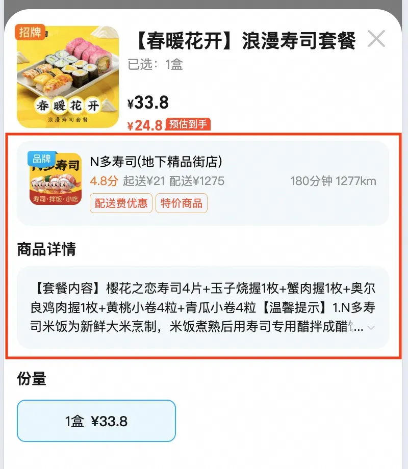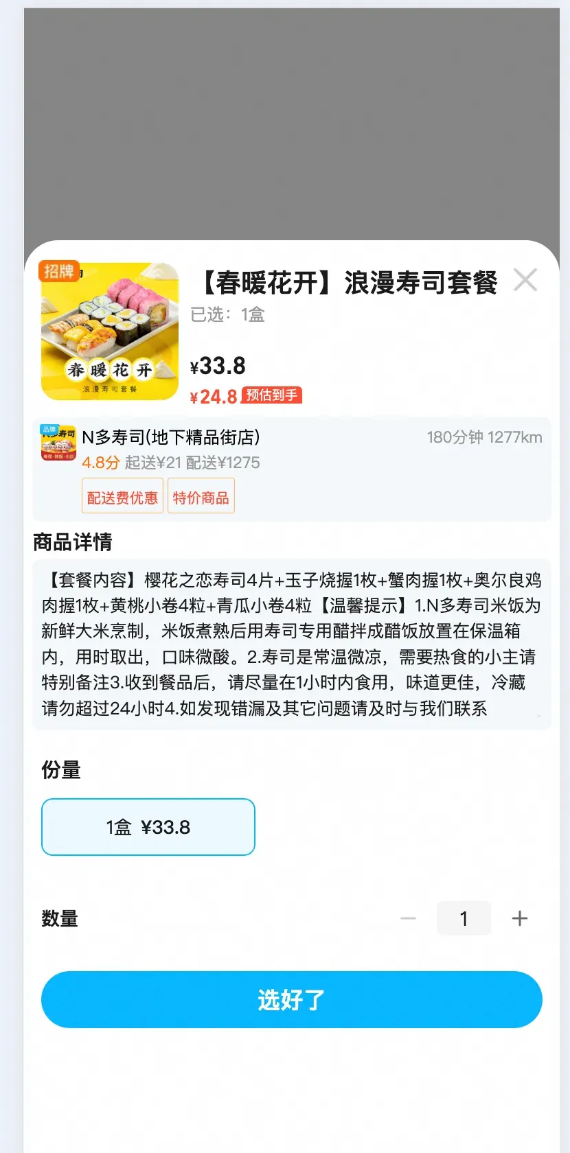 线上规格面板渲染浮层举例,左图为单品客制化面板,右图为结构化套餐面板,业务特性下相差很大。