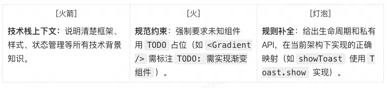 - 开发规范(如技术栈约束、多平台适配、最优代码实践)为团队提供统一的编码准则,避免技术债务和逻辑冲突。