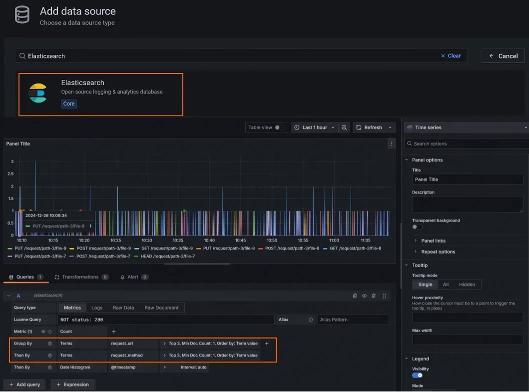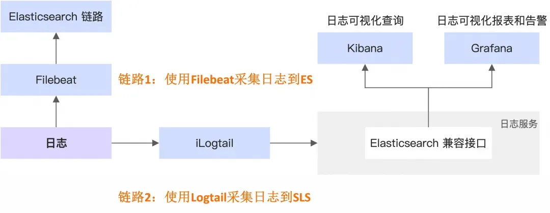 为了最大程度降低开源自建用户迁移 SLS 后的学习成本,针对习惯于使用 Grafana 分析日志数据,但需要将 ELK 系统迁移到 SLS 的用户,日志服务提供了兼容 Elasticsearch 的接口,便于他们使用 Grafana 的 Elasticsearch 数据源插件访问日志服务进行查询和分析。另外,日志服务也提供了原生的 Grafana 数据源插件。