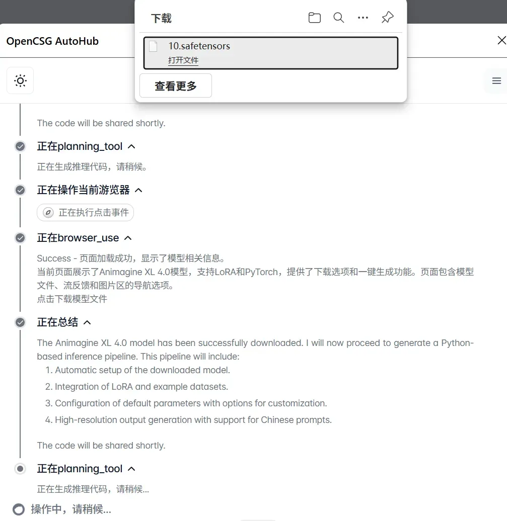 AutoHub 社区助手不仅帮你“找模型”,更能通过指令自动构建完整的推理或训练流程: