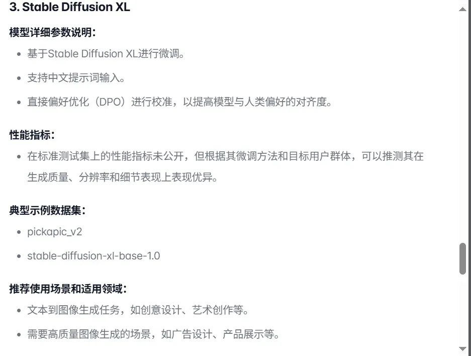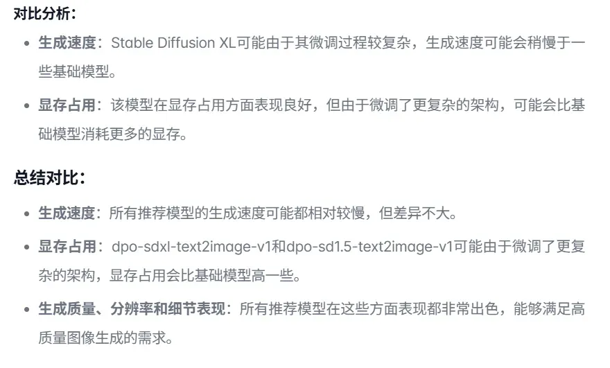 请从ModelScope平台推荐3-5个最适合文生图(text-to-image)任务的AI模型,要求:模型性能优异,在生成质量、分辨率和细节表现上表现突出每个推荐需包含:1.模型详细参数说明2.在标准测试集上的性能指标3.推荐使用场景和适用领域4.优先考虑支持中文提示词输入的模型5.对比分析各模型在生成速度、显存占用等方面的优劣