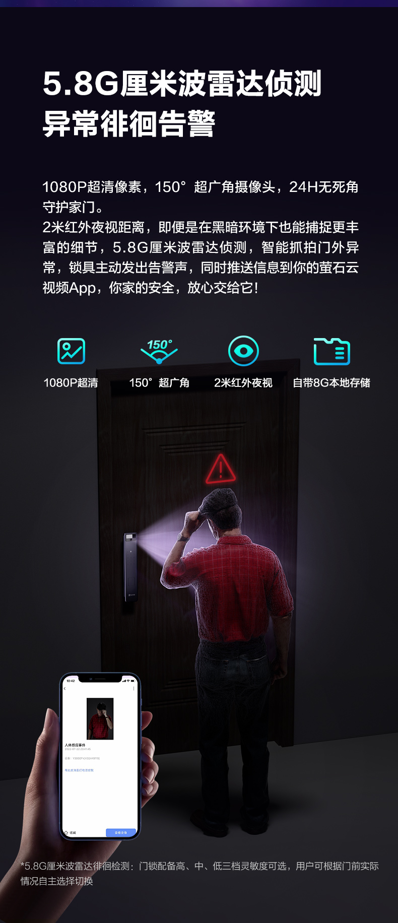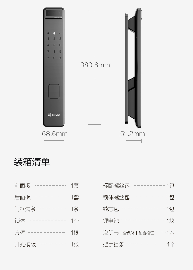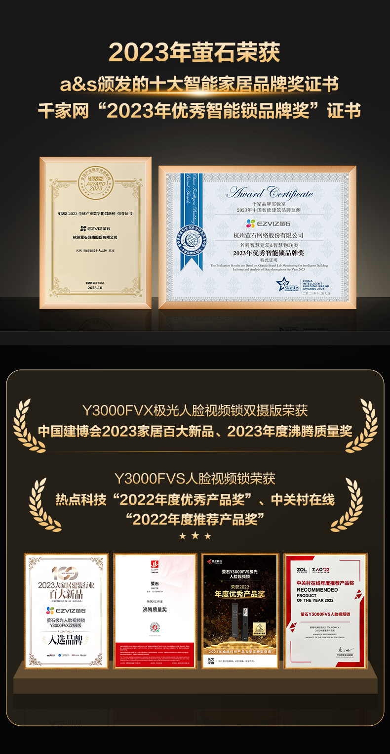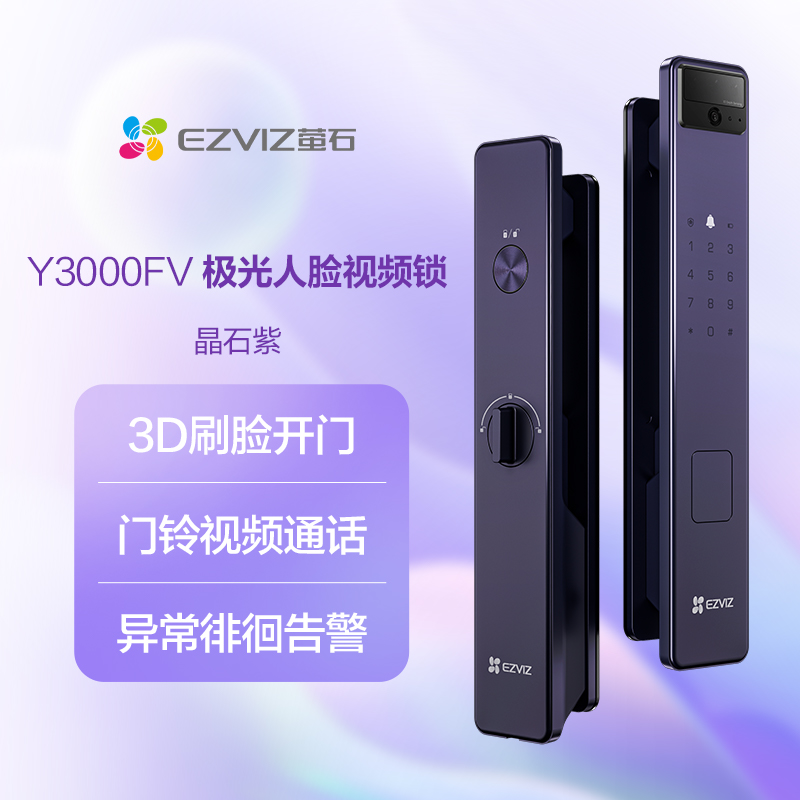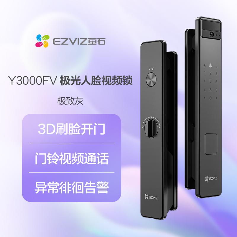 "title": "萤石AI人脸识别智能猫眼视频y3000无需指纹家用防盗门电子密码锁",