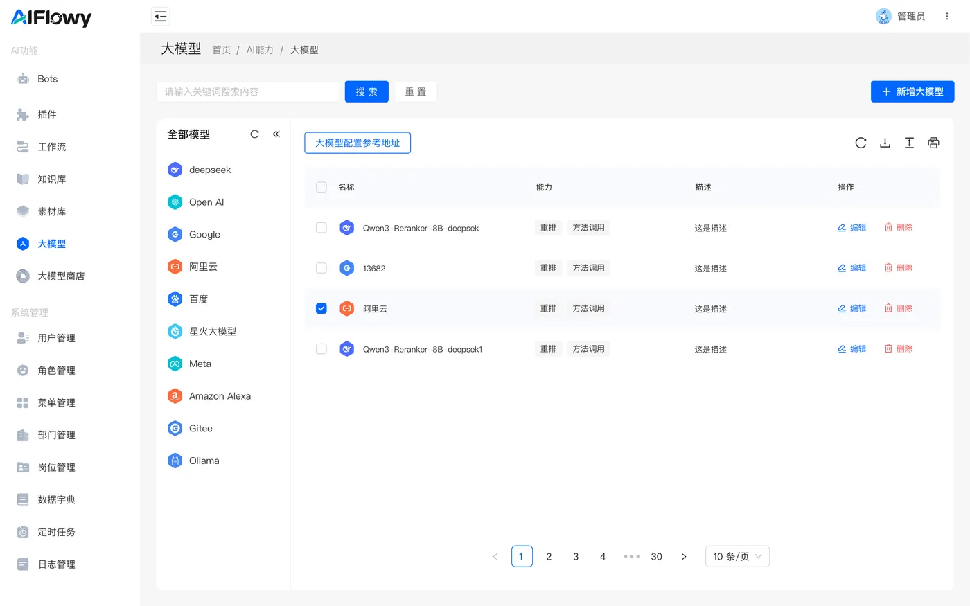 - 集成了 大模型配置与市场,统一接入主流云厂商;