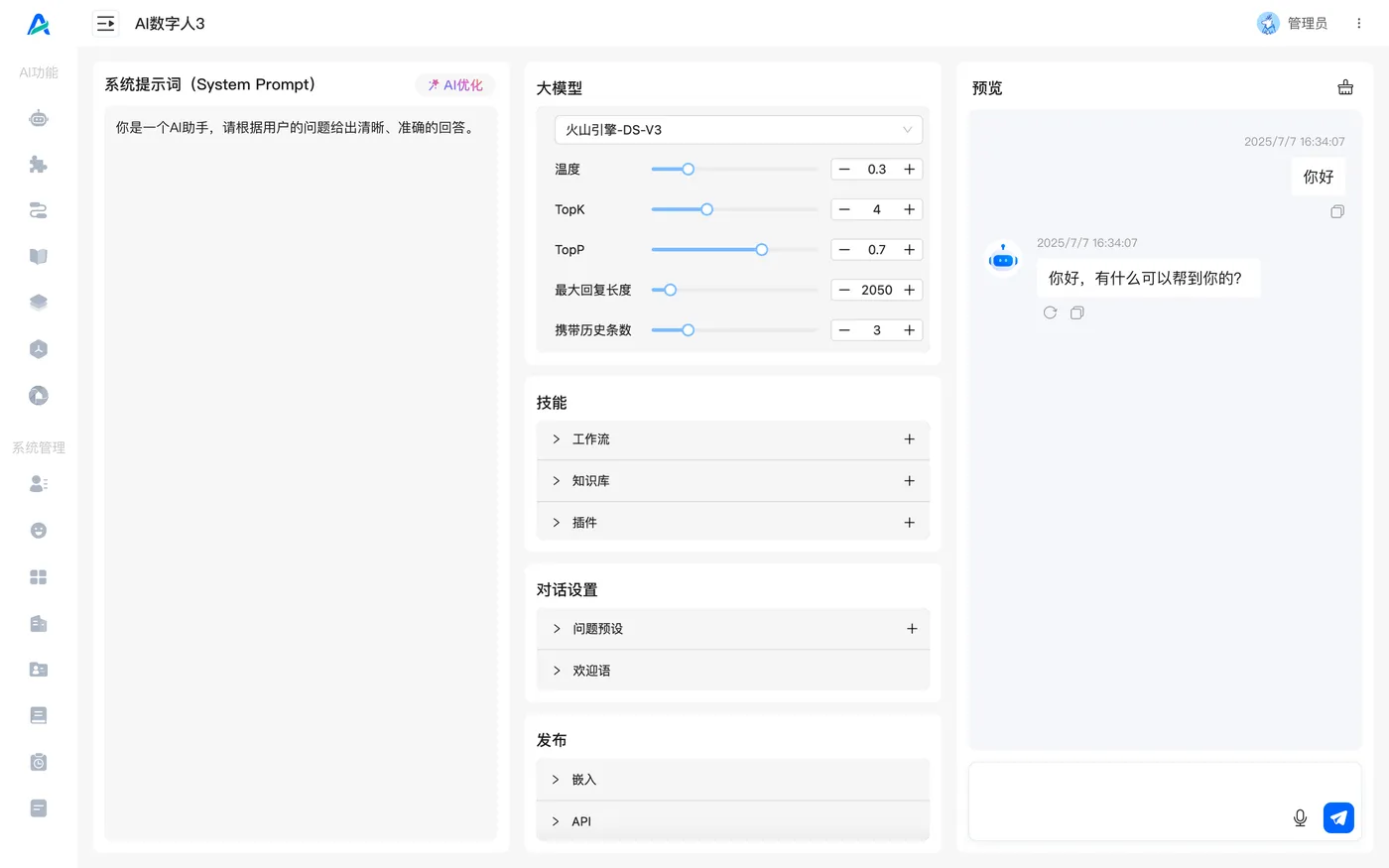 - 内置 Bot、插件、素材中心,构建即用级 AI 应用;