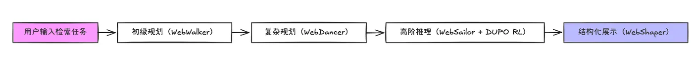 - WebShaper:负责将检索结果结构化输出,适配前端展示或进一步处理。
