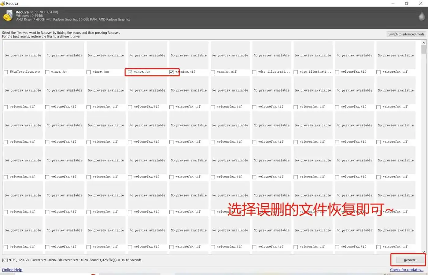 5、选择误删除或丢失的文件,点击恢复就可以了。