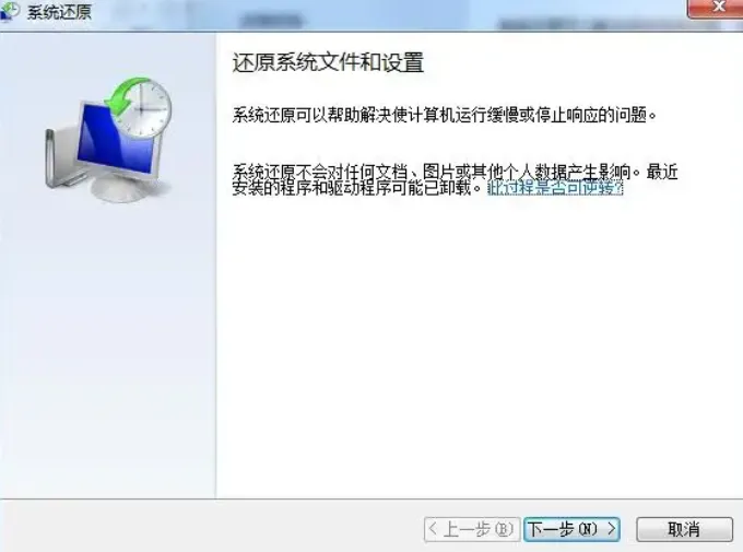如果是已开启,则点击下方配置按钮,按照提示操作,将电脑数据状态还原到误删文件之前的状态,也可以找回文件。