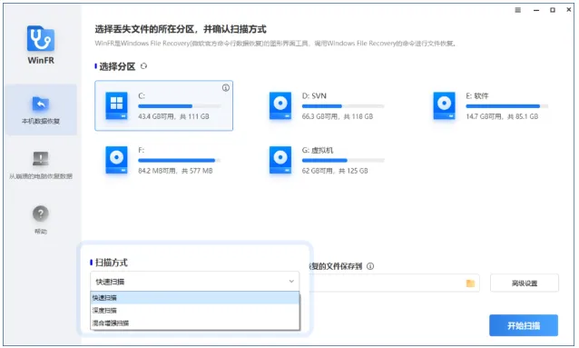 WinFR界面版最近偶然发现傲梅将微软这款命令行程序二开成了图形版,核心内容还是 Windows File Recovery 只是给他增加了图形界面。图形界面设计简单易用,更适合大众用户使用。并且保持着完全免费
