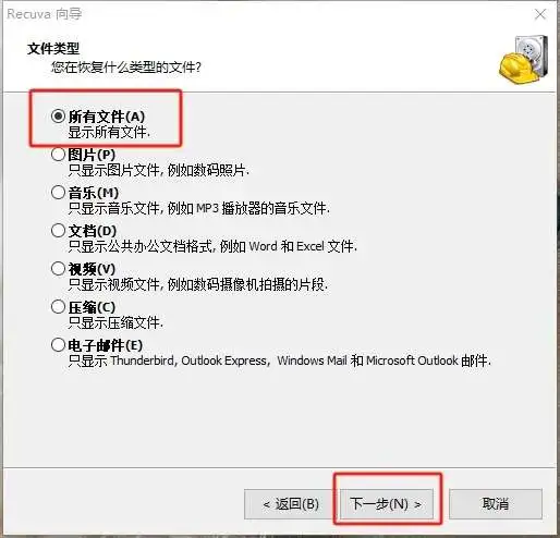 根据文件系统和数据丢失情况选择扫描方法。如果需要,可以使用高级设置。