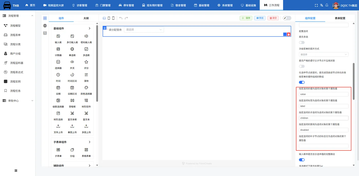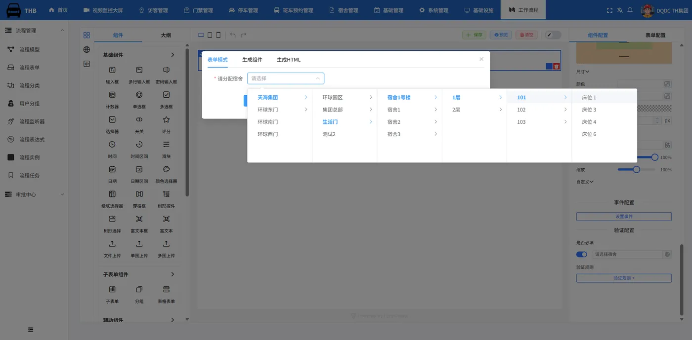 左侧就是可以选择的表单控件,可以按照自己的需要去配置审批通过时想要填写的表单,我现在就以一个级联选择器为例子给大家演示一下如何使用。