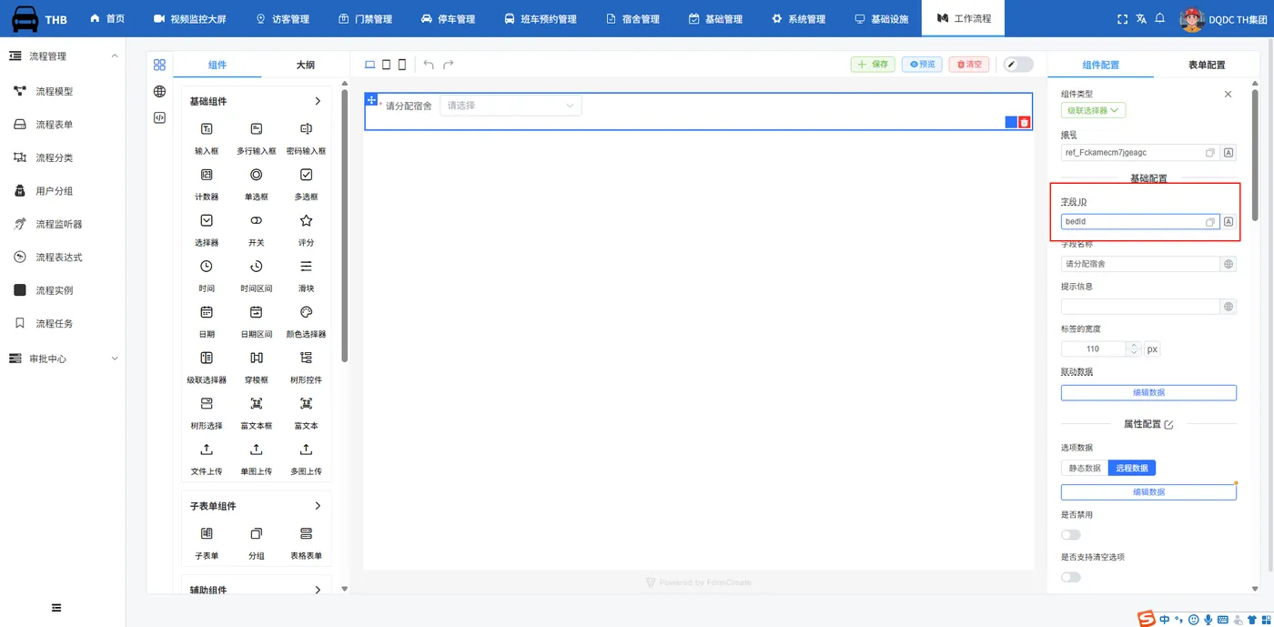 1.字段 ID:组件对应的字段名用于与组件的数据进行绑定。字段名需以字母开头,以确保能够正确识别。这个字段是前端传给后端的标志,后端需要通过这个bedId去找到前端传过来的值。