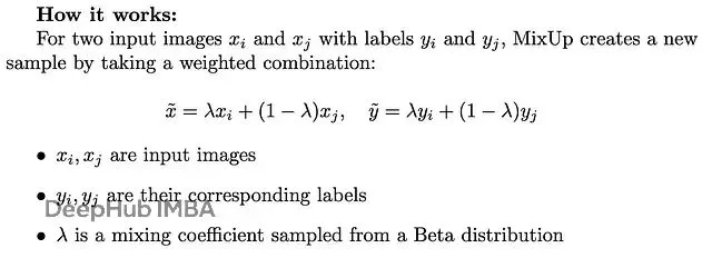 MixUp是一种通过线性插值生成虚拟训练样本的数据增强方法。该技术将两个不同的训练样本按照特定比例进行混合,同时对相应的标签进行相应的线性组合处理。