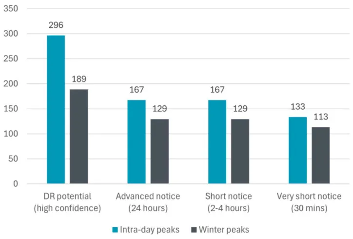 需求响应潜力按通知时间分级(如30分钟响应潜力低于24小时响应)。