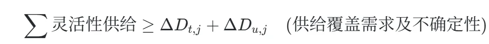 在高比例新能源系统中,需新增灵活性供需平衡约束: