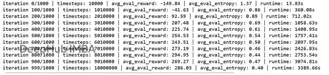 f"avg_eval_reward: {avg_reward:.2f} | avg_eval_entropy: {avg_entropy:.2f} | runtime: {elapsed:.2f}s")
