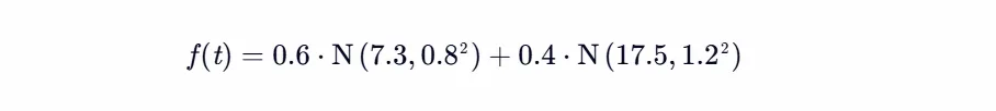 其中,μ=3.2(对应中位数24.5公里),σ=0.6,覆盖95%日行驶里程在8-65公里区间。商务出行场景采用双峰高斯混合模型,峰值分别位于35公里(通勤)和120公里(跨城)。