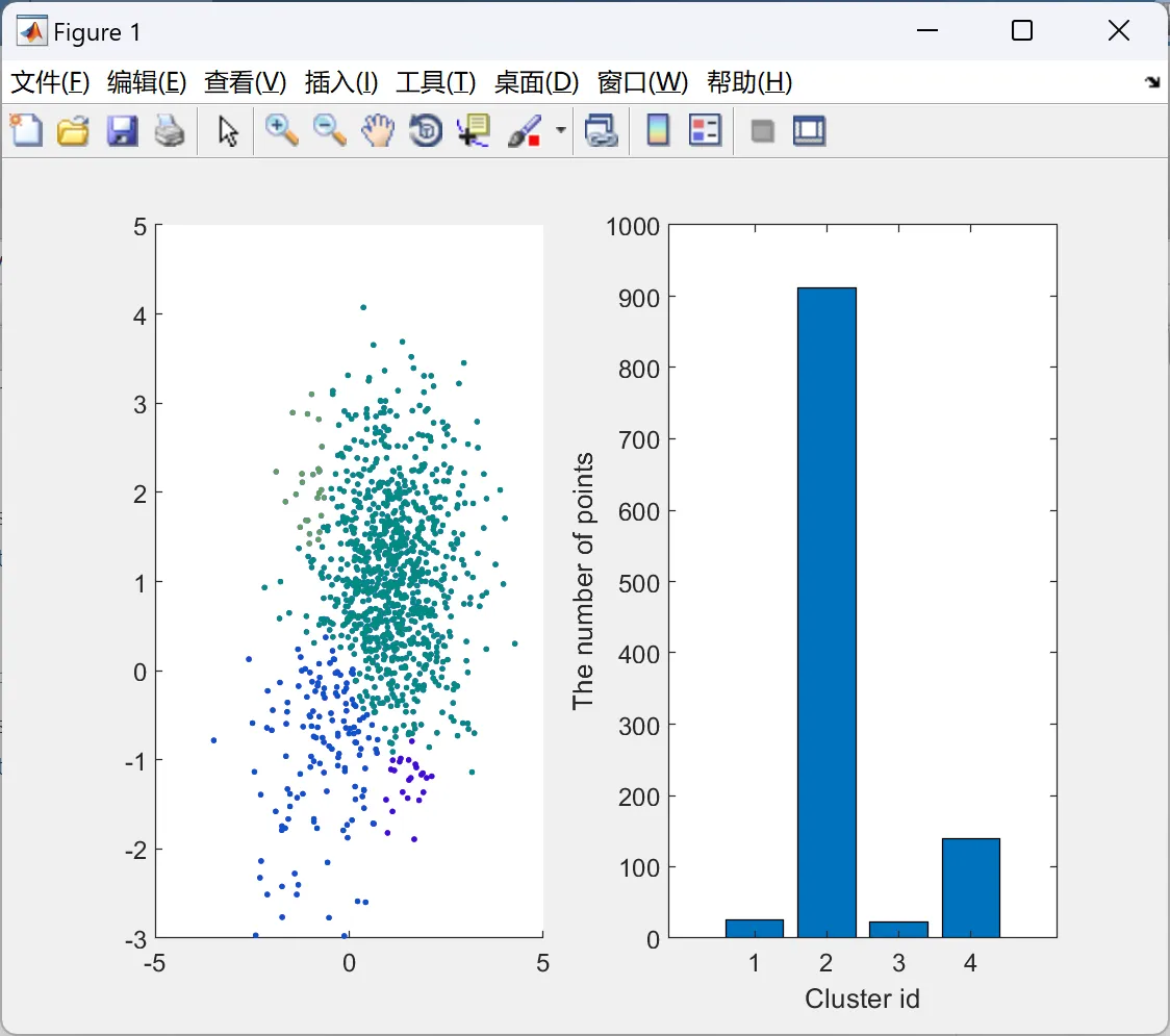 disp(['Cluster ',num2str(k), ': ', num2str(clusterNums(k)),' data points.']);