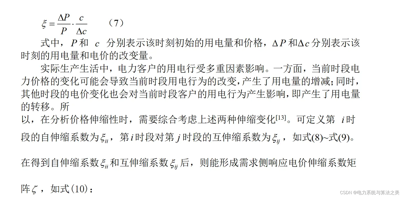客户用电量与电价之间的关系采用电价伸缩系数 编辑来表示。 编辑可以定义为客户用电量波动率与价格波动率的比值,如式(7):
