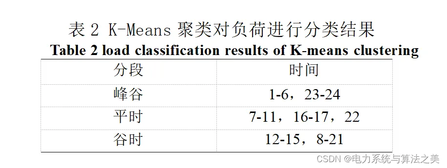 对于需求响应参与的模型,我们先对负荷进行K-Means聚类算法,把负荷分为高峰、平段、低谷三个时段,如表2所示。通过1.4.1节的基于价格型需求策略得到需求响应后的负荷 编辑,然后在调度时段内再采用激励型需求响应直接控制方式进行负荷转移,并给予补偿。