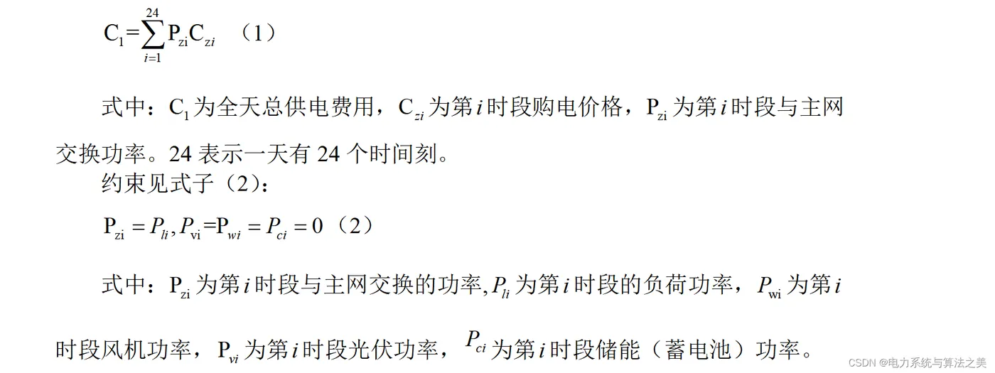 微网中储能和需求响应不作用,微电网与电网交换功率无约束,且无可再生能源,所以微电网中所需的电量只能从主网购买。这时候只需要满足功率平衡约束即可。