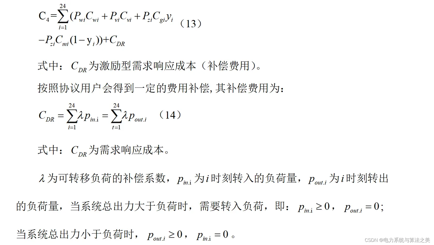 通过把3.3节和3.4节结合起来,得到如下风光储能和需求响应都参与模型