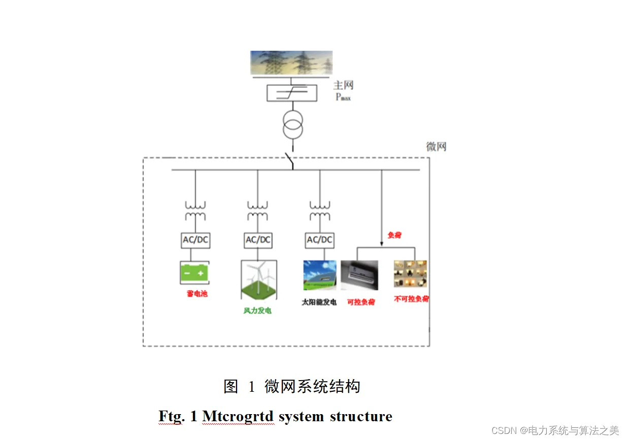 一个含有风机、光伏、蓄电池以及负荷的微电网系统见示意图3.1。