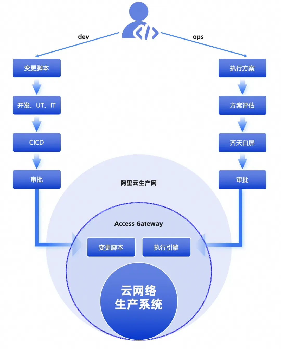 - 自动化变更:操作步骤通过 API 调用脚本化,放在 Access Gateway 上统一执行。