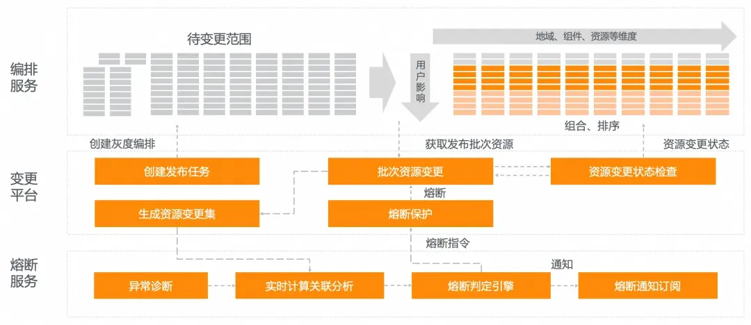 变更编排按照发布的地域、客户的等级、封网的要求以及业务的诉求确定变更实际的发布顺序和时间。变更编排的基本要求是可灰度: