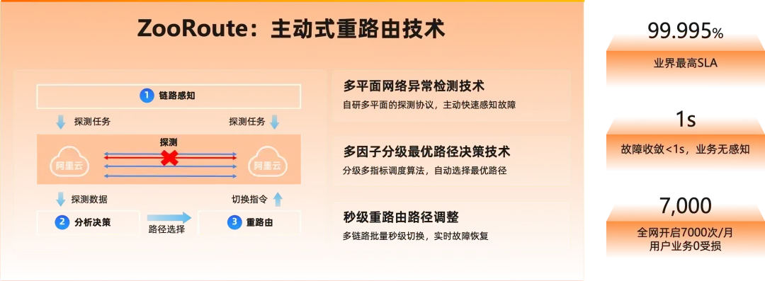 在可恢复场景下,阿里云 ECS 构建了基于事件的智能化异常调度系统,存储部署了持续数据校验 CC 系统,网络推出的主动式重路由 ZooRoute 技术等实现高精度的异常检测和恢复能力。