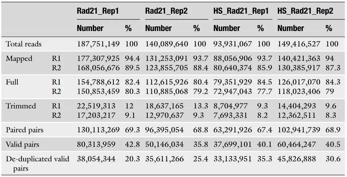我们分别在 untreated 和 HS 条件下获得 44,190 和 53,219 个显著的 Rad21 peaks。