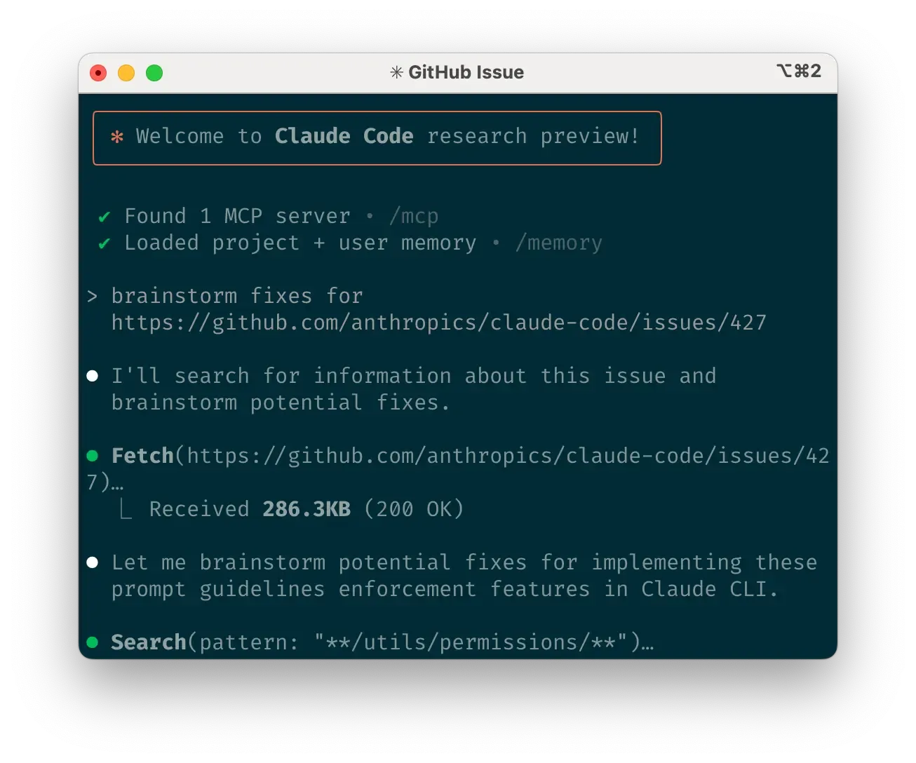 Claude Code 发布了 Claude Code,这是一个用于智能编程的命令行工具。作为一个研究项目,Claude Code 为 Anthropic 工程师和研究人员提供了一种更原生的方式来将 Claude 集成到他们的编程工作流程中。