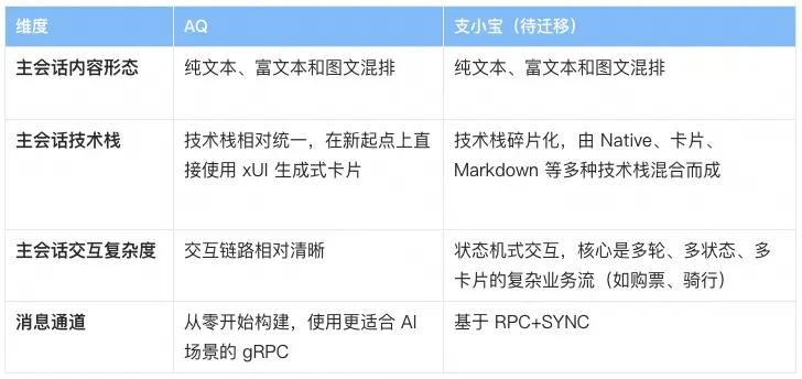 - 早期的 AI 搜和 AQ 分别接入了不同版本的 xUI,彼此协议不统一,功能属性也存在差异;