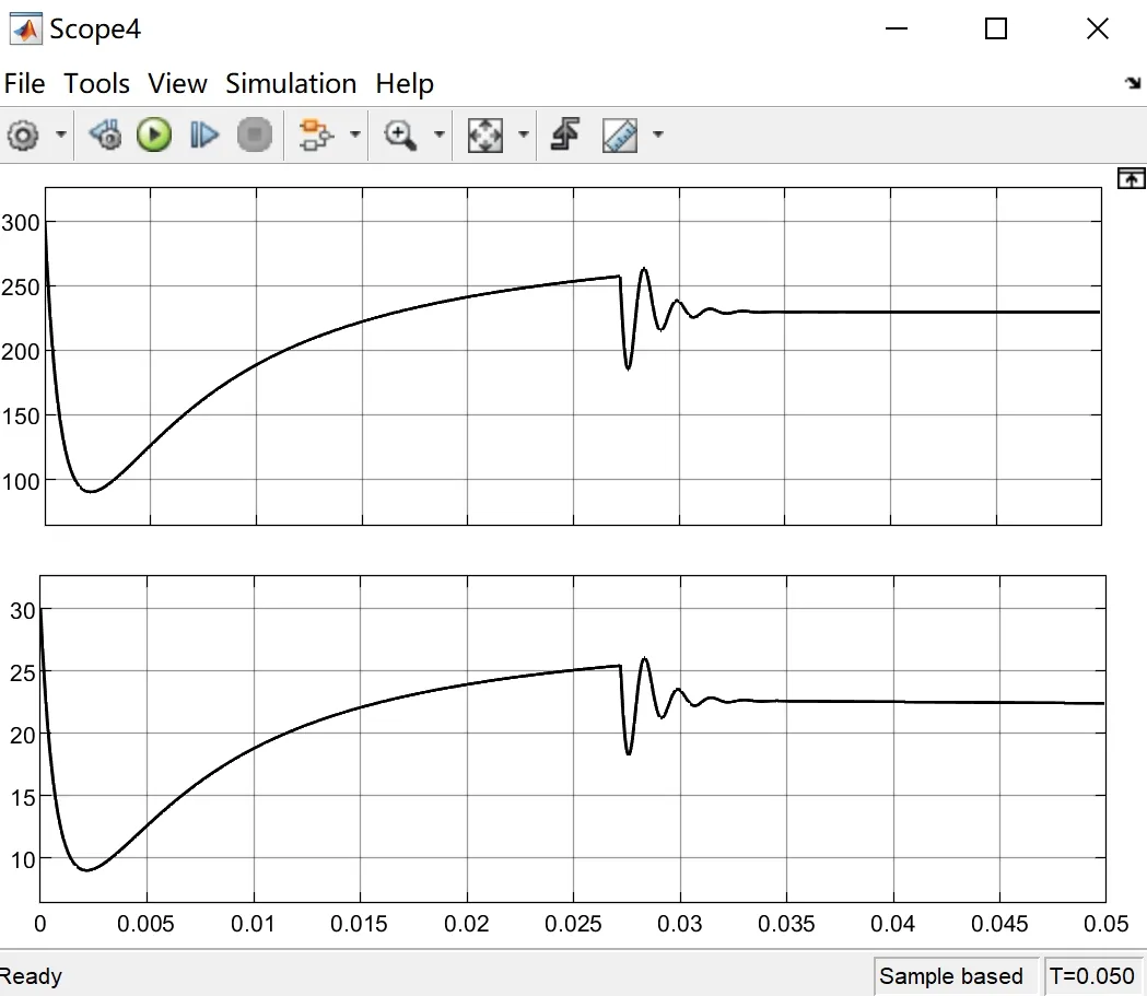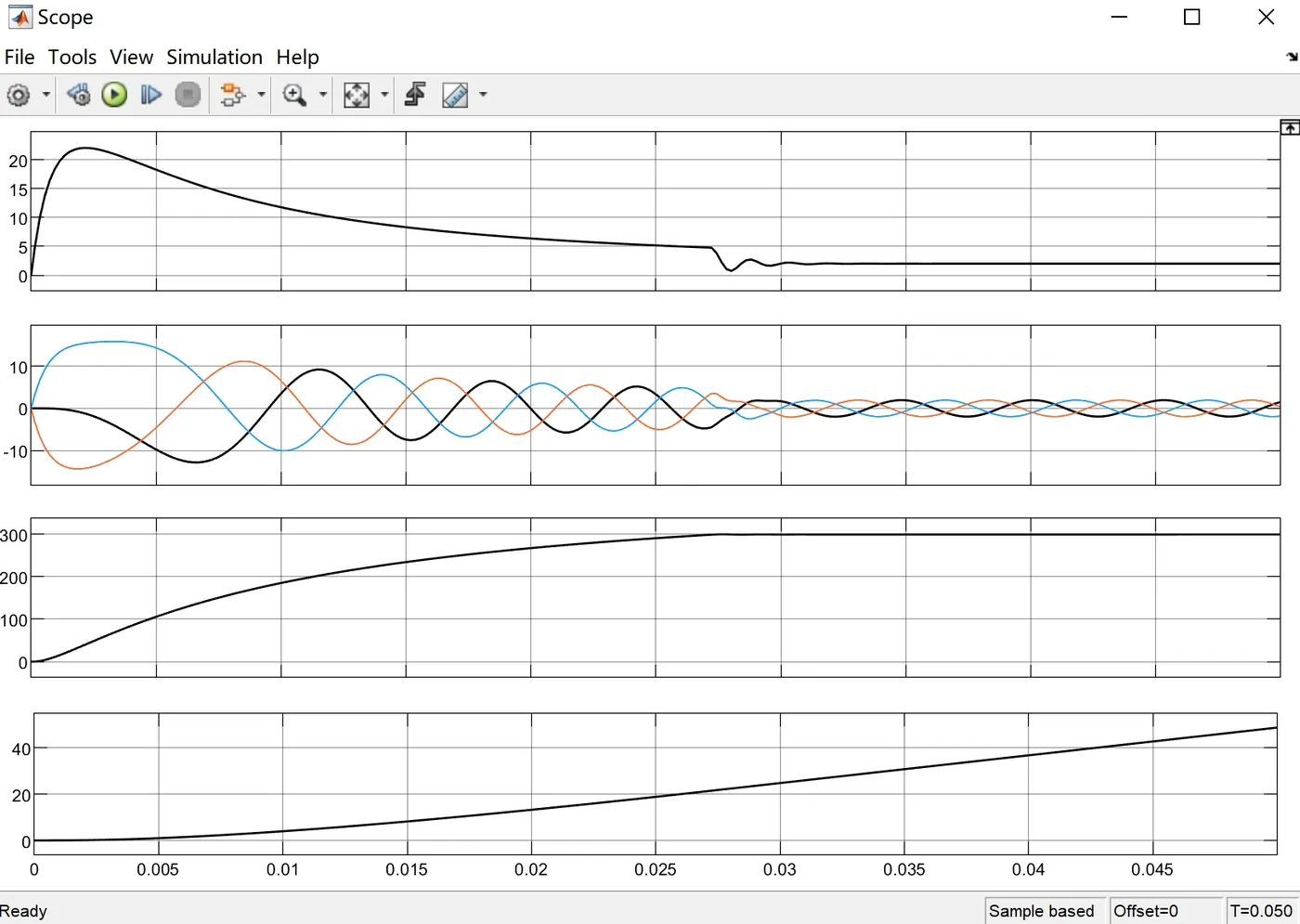 - 转速在0.2s内达到目标值,超调量小于5%,稳态误差低于0.1%。