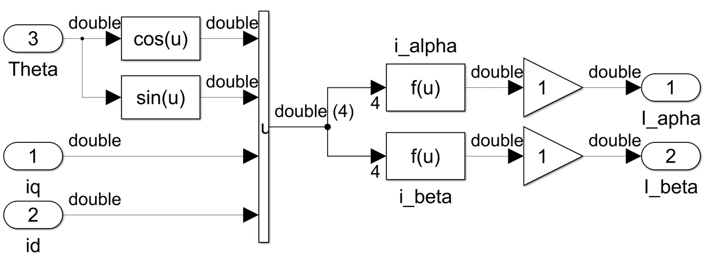 - 坐标变换模块:实现三相静止坐标系(ABC)与两相旋转坐标系(dq)的相互转换。