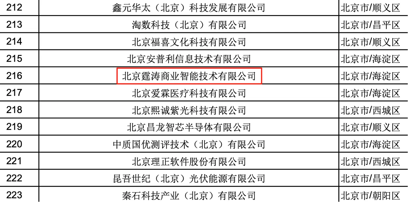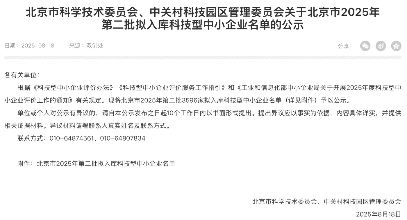 近日,北京市科学技术委员会、中关村科技园区管理委员会公示了2025年第二批拟入库工业和信息化部科技型中小企业名单,北京霆涛商业智能技术有限公司成功入选。这一认定基于《科技型中小企业评价办法》、《科技型中小企业评价服务工作指引》以及工业和信息化部相关通知,旨在遴选出在科技创新领域表现出色的企业,推动科技型中小企业高质量发展。